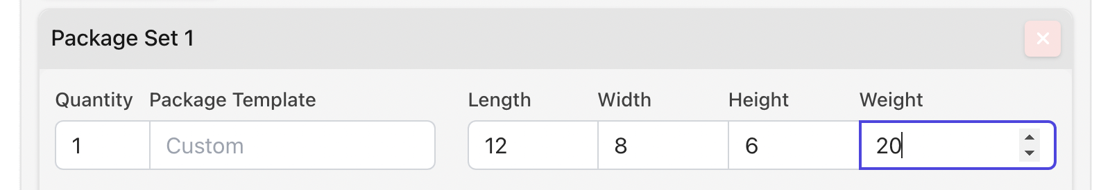 You can always enter a manual weight that will be applied to all quantities of packages. This overrides any automatic calculations.
