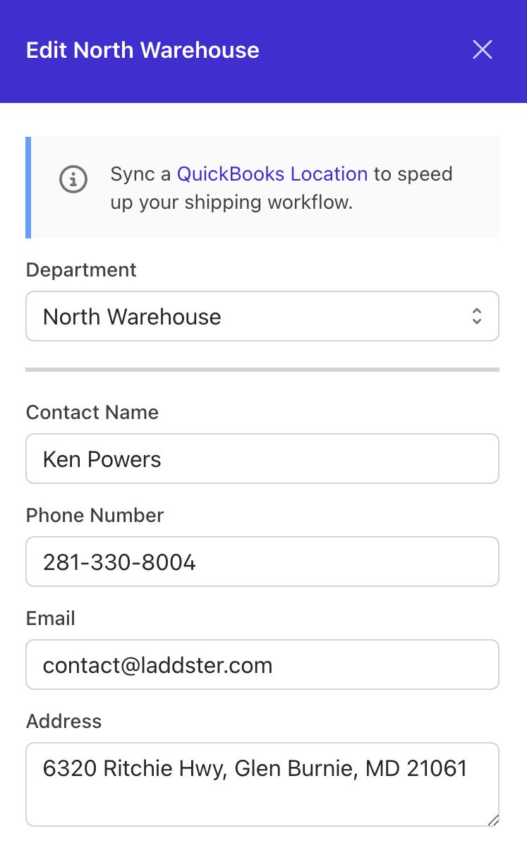 Syncing shipping locations to QuickBooks locations streamlines your workflow: